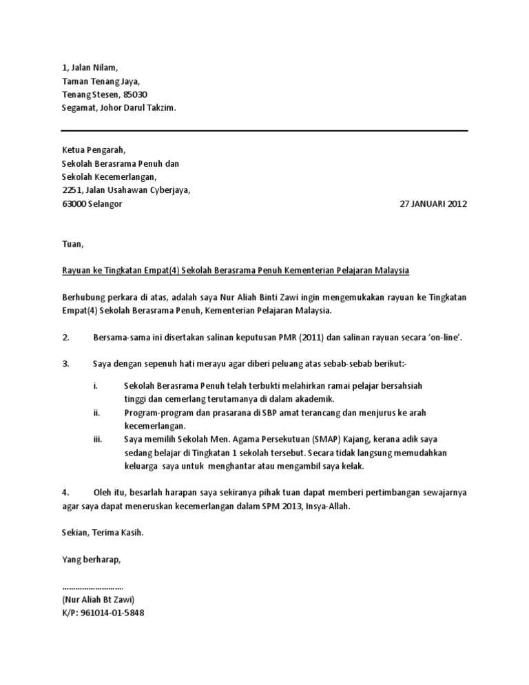 Contoh Surat Rayuan Mrsm Tingkatan 1 Resepi Book M Otosection
